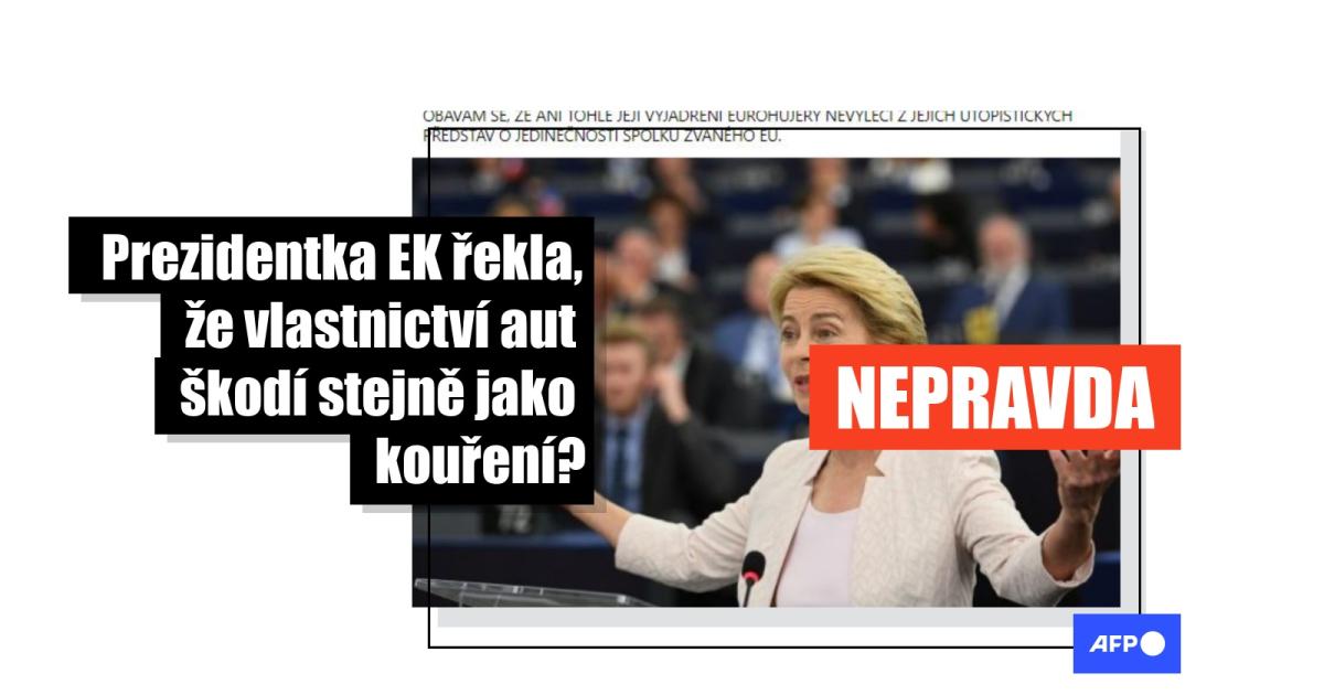 Ursula von der Leyen: „Individuální vlastnictví automobilu musí být jako kouření – pokud se rozhodnu auto vlastnit a nutně nemusím, společnost mi musí důrazně říkat, že to pohodlí je na úkor někoho nebo něčeho – v tomto připadne nejen zdraví, ale budoucnosti nás všech,“ stojí v tomto facebookovém příspěvku z 5. června 2022, který sdílelo přes 130 uživatelů. Podobné příspěvky se objevily také například zde či zde.
