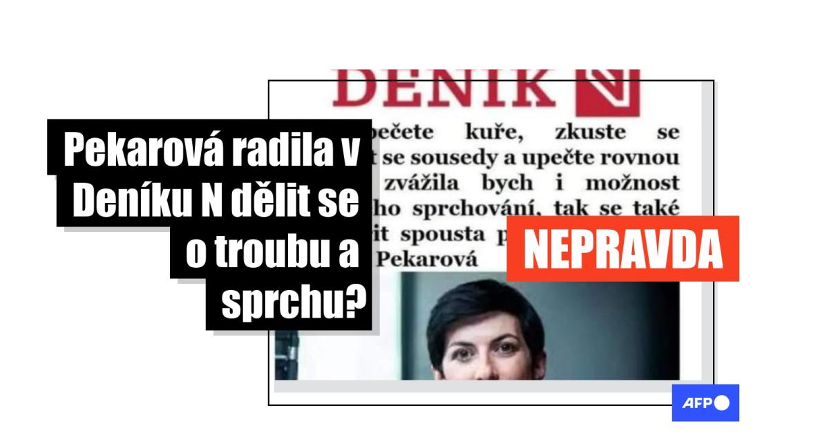 „Když pečete kuře, zkuste se domluvit se sousedy a upečte rovnou dvě. A zvážila bych i možnost společného sprchování, tak se také dá ušetřit spousta peněz,” zní údajný citát předsedkyně dolní komory parlamentu Markéty Pekarové Adamové, který byl spolu s její fotografií sdílen například zde. Celý snímek má budit zdání, že se jedná o článek Deníku N.