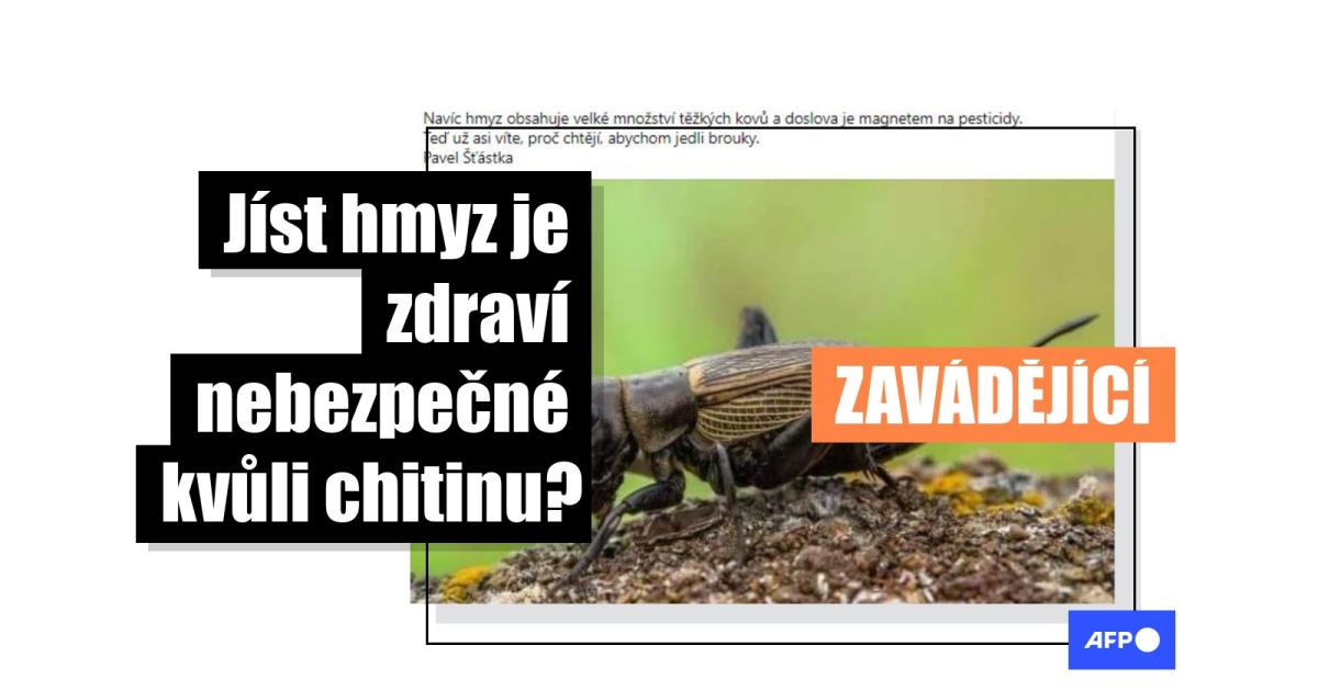 „Prosím, NIKDY nejezte hmyz,“ hlásá tento příspěvek z 20. ledna 2023, který sdílelo přes 8 600 uživatelů Facebooku. „Hmyz obsahuje chitin, který nemůže být zpracován našimi střevy . Ale chitin je velmi chutný polysacharid pro rakovinu, parazity, plísně a téměř cokoliv, co způsobuje onemocnění.“ Autor text uzavírá poznámkou: „Teď už asi víte, proč chtějí, abychom jedli brouky.“