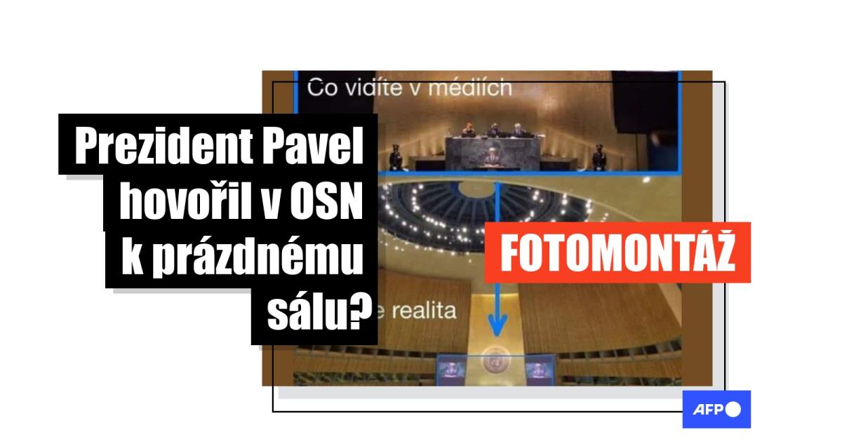 Fotografie prezidenta Pavla hovořícího k prázdnému sálu v OSN je fotomontáž