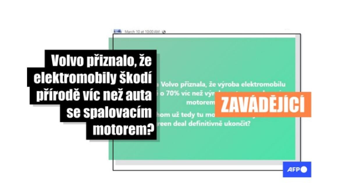 Tvrzení, že „automobilka Volvo přiznala“ vyšší škodlivost elektrických aut (EV) se na Facebooku šířila hlavně prostřednictvím příspěvku politického aktivisty Jindřicha Rajchla z 10. března 2024, který sdílelo přes 5 800 uživatelů. „Mohli bychom už tedy tu monstrózní lež jménem green deal definitivně ukončit?“ ptá se Rajchl na závěr.