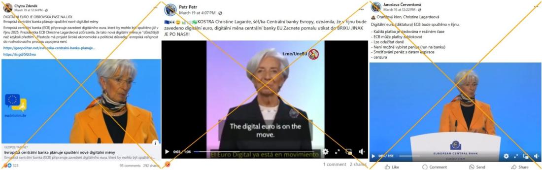 Krátce poté se na sociálních sítích objevila řada příspěvků tvrdících, že podle Lagarde bude digitální euro „spuštěno“ v říjnu 2025. „Digitální euro je obrovská past na lidi,“ tvrdí tento příspěvek z 19. března 2025, který na Facebooku sdílelo téměř 300 uživatelů. Další podobné příspěvky varovaly uživatele, že jakmile bude digitální měna v říjnu spuštěna, „nebude možné vybírat peníze“.