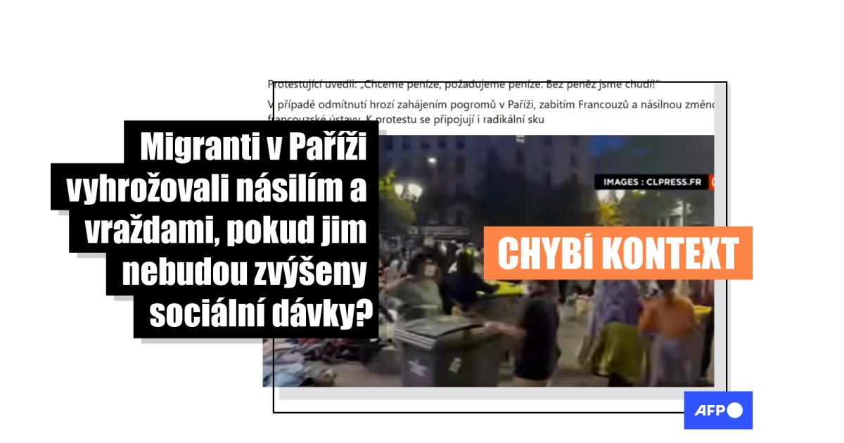 „V Paříži černoši a Arabové, kteří nechtějí pracovat, paralyzovali centrální ulice a požadují zvýšení dávek – ze současných 800 na 2000 eur měsíčně,“ tvrdí tento příspěvek, který od 7. července 2025 sdílelo bezmála 2 000 uživatelů Facebooku. „V případě odmítnutí vyhrožují, že začnou ničit Paříž, zabíjet Francouze a násilím měnit francouzskou ústavu.“
