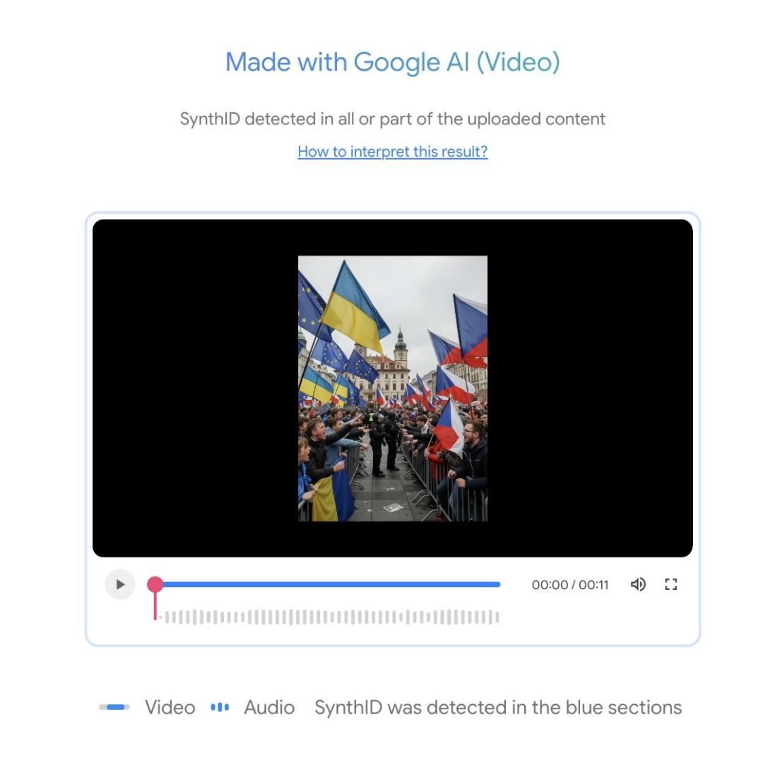 Video jsme prověřili v nástroji SynthID na detekci obsahu generovaného programem Google AI. Nástroj potvrdil, že reel vznikl právě tímto způsobem: