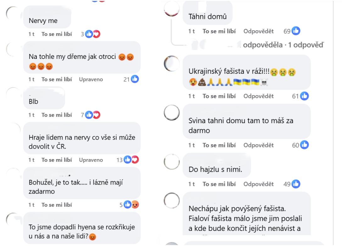 Komentáře u příspěvků, z nichž je mnoho nenávistných, naznačují, že uživatelé považovali virální video za skutečné. „To jsme dopadli, hyena se rozkřikuje u nás na naše lidi?“ dočteme se v jednom. Další napsal: „Sviňa, táhni domů, tam to máš zadarmo.“