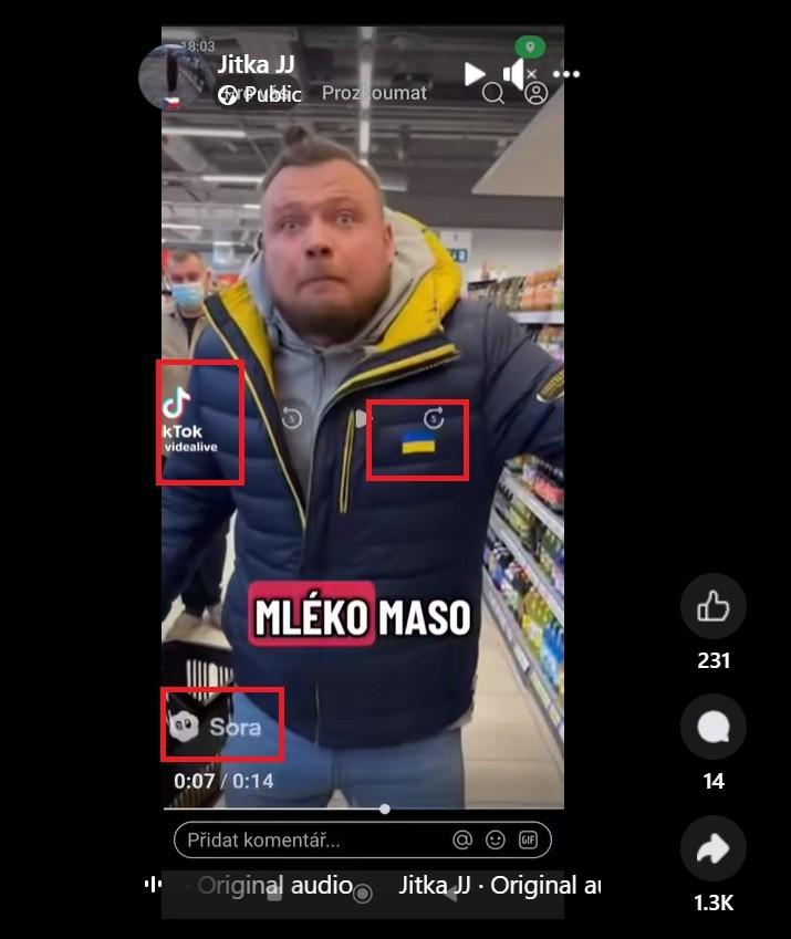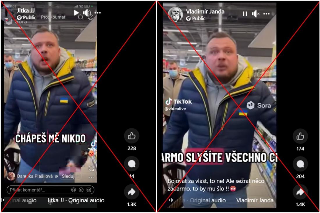 Podle statistik Česká republika přijala nejvíce válečných uprchlíků z Ukrajiny na počet obyvatel ze všech zemí Evropské unie. Když Rusko v únoru 2022 Ukrajinu napadlo, Češi vítali uprchlíky s otevřenou náručí. Nedávné průzkumy veřejného mínění ovšem naznačují, že část populace cítí únavu z jejich přítomnosti. V říjnu 2025 se na českých sociálních sítích šířilo virální video, v němž se ukrajinský muž dožadoval potravin zdarma v supermarketu. Vodoznaky, vizuální nesrovnalosti, potvrzení uživatele TikToku a analýzy nástrojů na rozpoznání umělé inteligence ale dovedly AFP k závěru, že video vyrobila umělá inteligence.