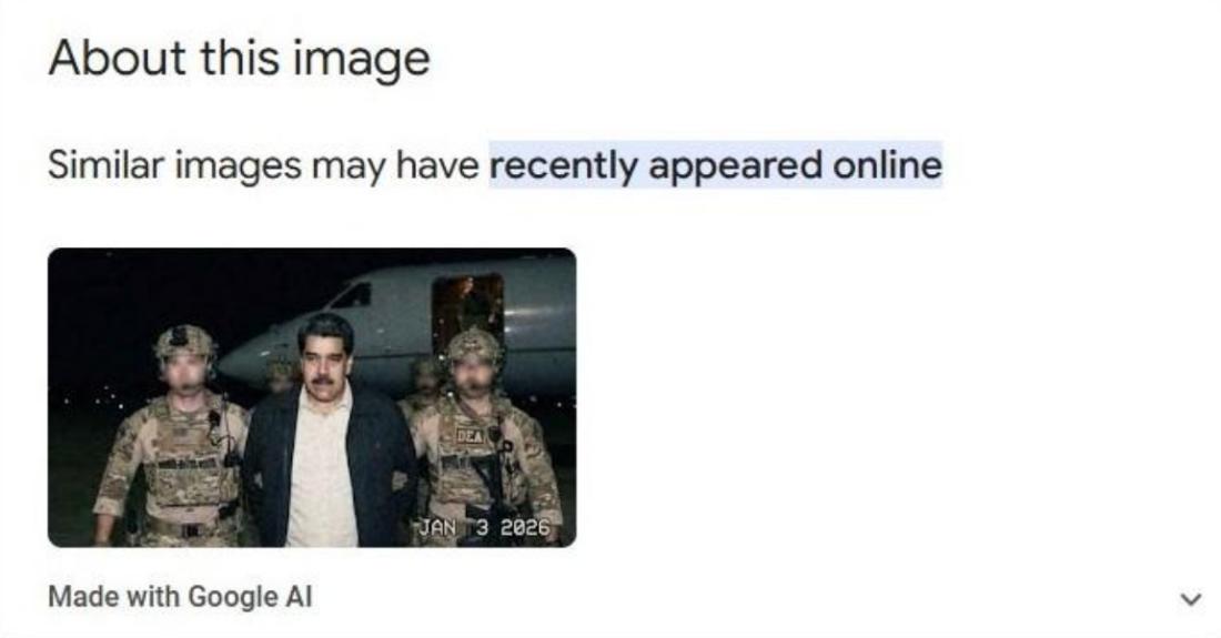 Zpětné vyhledávání obrázků v Google ukázalo, že obrázek byl „vyroben Google AI“. Mimo to Gemini, nástroj umělé inteligence společnosti Google, v obrázku detekoval SynthID – neviditelný vodoznak, který podle společnosti slouží k identifikaci obsahu vytvořeného pomocí jejích nástrojů.