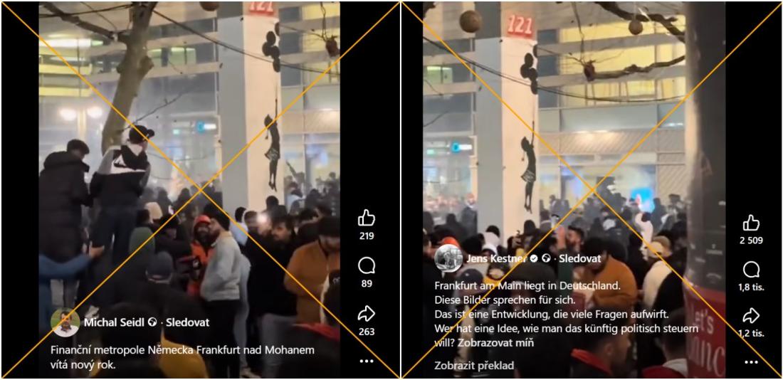 V Evropě včetně Česka, kde téma migrace rozděluje společnost nejméně deset let, se často šíří dezinformace namířené proti uprchlíkům. V této souvislosti uživatelé sociálních sítí sdíleli dva roky staré video, na kterém převážně muži rozmanitého etnického původu slaví Silvestra v německém Frankfurtu. Příspěvky naznačovaly, že video zachycuje příchod roku 2026 a vyvolaly protimigrantské komentáře včetně kritiky bývalé německé kancléřky Angely Merkelové za její vstřícný přístup k uprchlíkům. Záběry se šířily i v angličtině a němčině, přičemž jeden z příspěvků srovnával Frankfurt se syrským hlavním městem Damašek. Frankfurtská policie ale AFP potvrdila, že záběry zachycují silvestrovskou noc 2023/2024.
