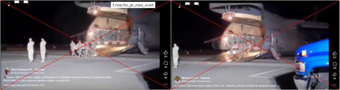 Příspěvky doprovází dvacetivteřinové video, na němž vidíme vojáky, kteří nesou z vojenského letadla rakve zahalené americkými vlajkami. Klip koloval nejen na českých sociálních sítích. Šířil se jako součást příspěvků v angličtině, arabštině, africkém jazyce hauština, indonéštině nebo rumunštině.