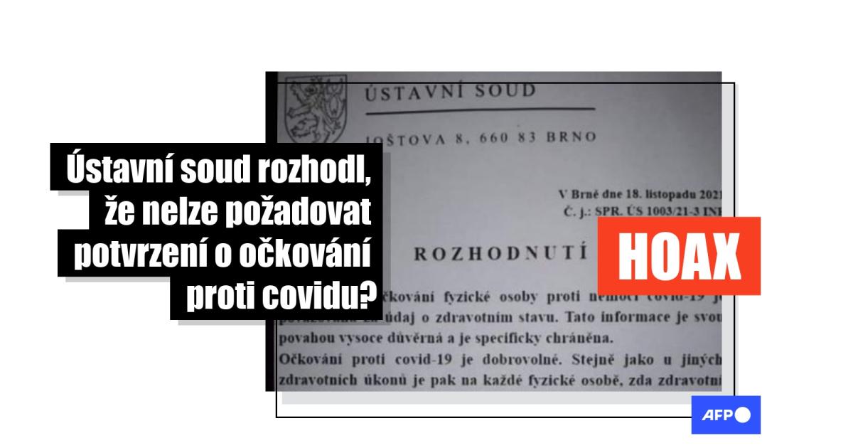 Podle této falešné verze ÚS rozhodl, že „nejste povinni nikomu sdělovat, zda ne/jste očkováni. Nikdo není oprávněn tuto informaci po vás vyžadovat. Nemusíte nikomu nic ukazovat: ani hygieně, ani policii, ani v restauraci, ani v zaměstnání”.