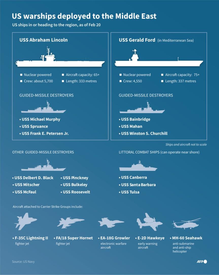 Příspěvky v češtině také mylně uvádějí, že USS Abraham Lincoln je největší válečná loď na světě. Největším vojenským plavidlem na Zemi je americká letadlová loď USS Gerald R. Ford, která se s doprovodnými plavidly přesunula nejprve z Karibiku a později ze Středozemního moře do vod na Blízkém východě na začátku března 2026.