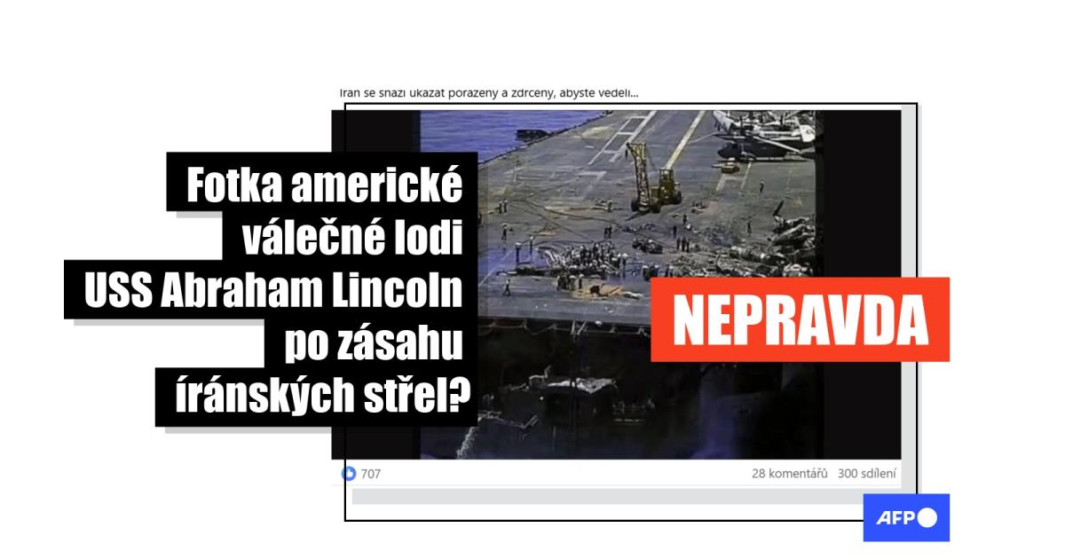 Íránské revoluční gardy prohlásily 1. března 2026, tedy druhý den současné války na Blízkém východě, že čtyři balistické střely zasáhly americkou letadlovou loď USS Abraham Lincoln. Armádní velení USA zprávu vzápětí popřelo. V této spojitosti se na sociálních sítích šířila fotka poškozeného vojenského plavidla s tvrzením, že zobrazuje loď Lincoln zasaženou Íránem. Fotografie, která se už v minulosti na sociálních sítích objevila v nepravdivých souvislostech, pochází z roku 1967 z války ve Vietnamu. Zachytila jinou americkou vojenskou loď poškozenou rozsáhlým požárem, který si vyžádal 134 životů.