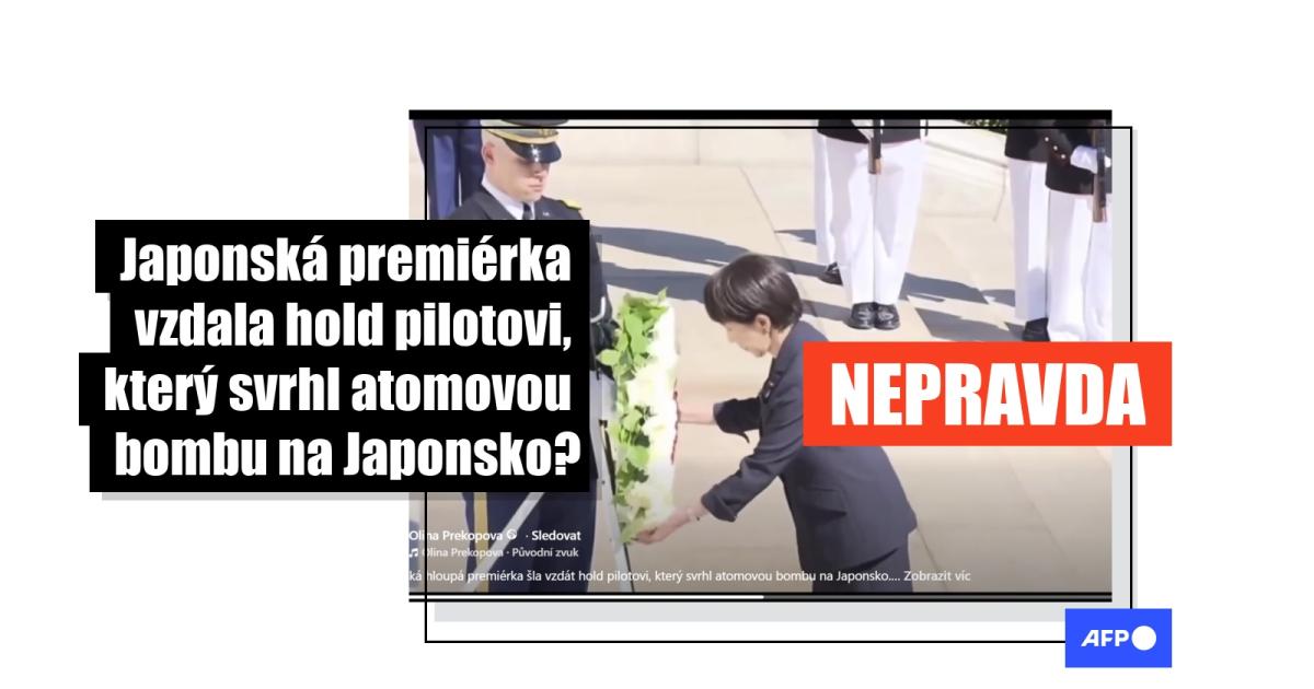 Japonská premiérka Sanae Takaiči navštívila v druhé polovině března 2026 Spojené státy americké. V USA absolvovala třídenní program včetně jednání s prezidentem USA Donaldem Trumpem. V této souvislosti se na sociálních sítích šířilo tvrzení, že Takaiči uctila památku amerického pilota, který shodil atomovou bombu na Japonsko. Jak ale uvedla japonská média a kancelář premiérky na sociálních sítích, Takaiči navštívila Arlingtonský národní hřbitov, kde položila věnec u hrobu neznámého vojína. AFP zjistila, že ani jeden z pilotů, kteří svrhli atomovou bombu na Nagasaki a Hirošimu, není pohřben na tomto vojenském hřbitově.