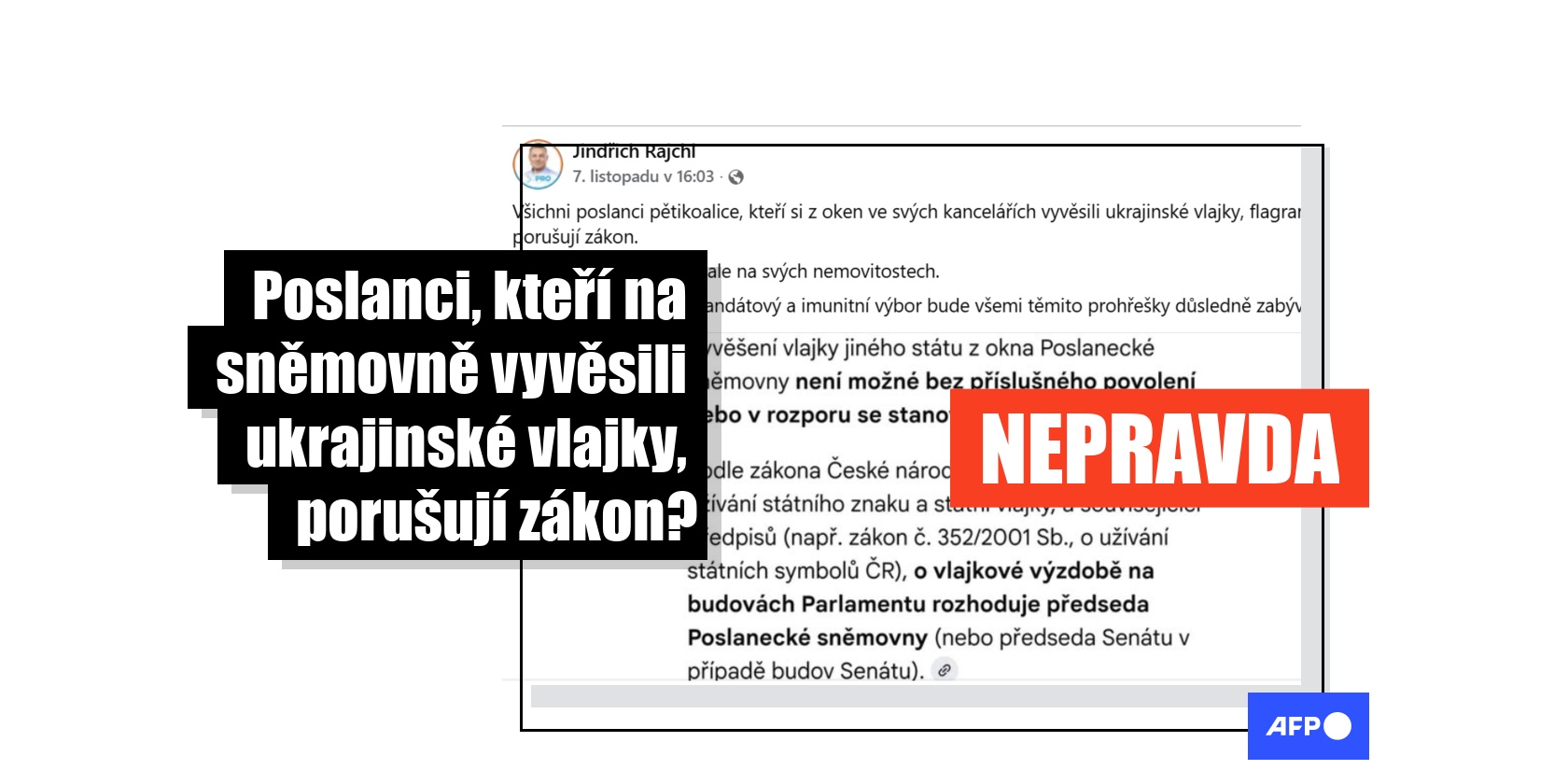 Poslanci, kteří vyvěsili ukrajinské vlajky z oken a balkonů Poslanecké sněmovny, neporušili zákon Zveřejněno dne 27/11/2025 v 14:07