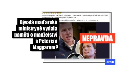 Obrázek Maďarské volby 2026 Zveřejněno 17/04/2026 Podezřelý web rozšířil nepravdivé tvrzení, že bývalá maďarská politička vydala paměti o exmanželovi Magyarovi