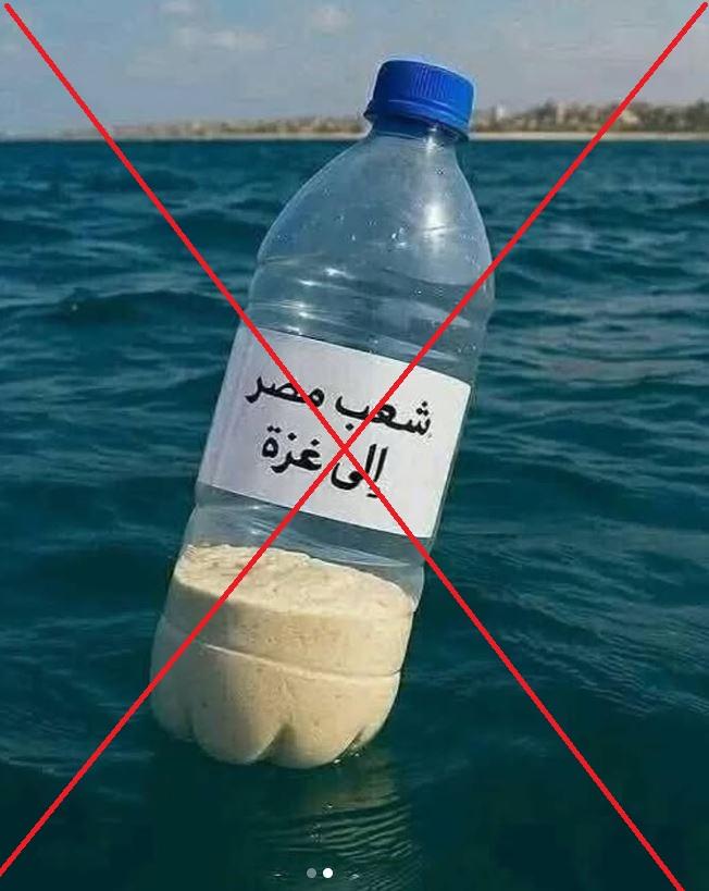 "Des jeunes égyptiens désespérés d'impuissance et écœurés par l'indifférence du régime égyptien au sort des palestiniens affamés par ses maîtres israéliens et états-uniens jette des bouteilles à la mer remplies de lait pour bébé, de farine et de riz dans l'espoir qu'elles arrivent à Gaza", écrit une internaute sur X.